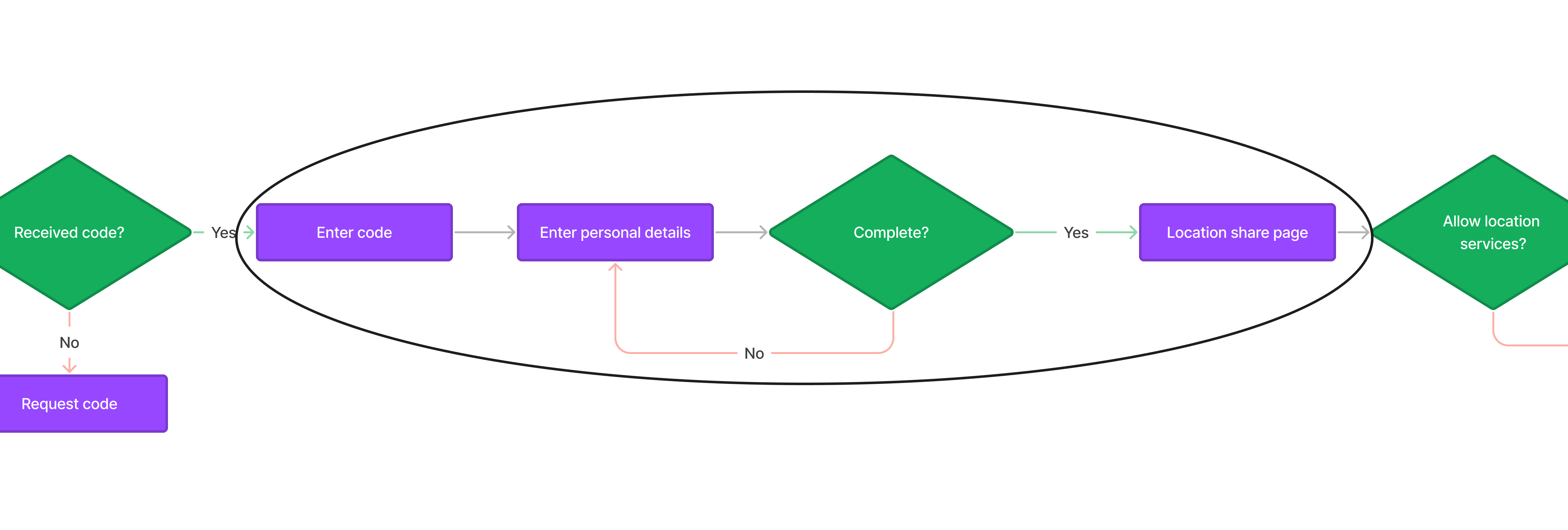 As a previously identified opportunity, location access has been situated at the end of the process. This is with the option to either accept or decline, therefore providing user with a choice instead of making them feel restricted.