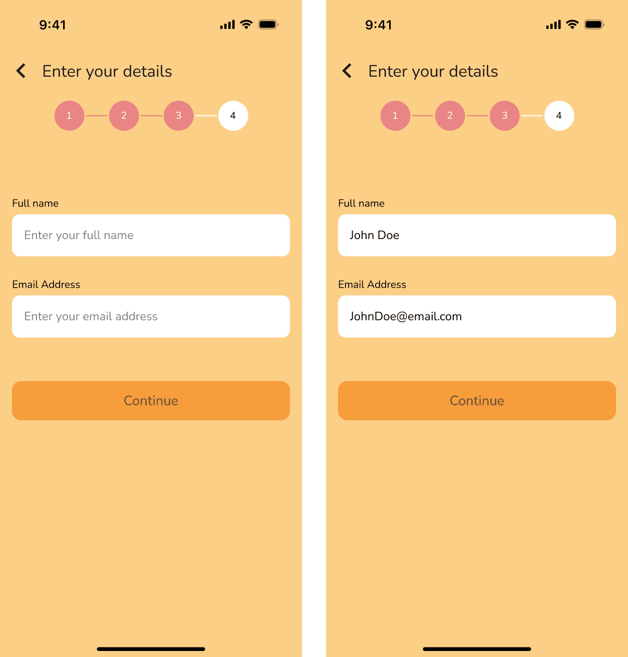 Simple and minimal, with a step progress indicator to visualise how many steps remaining in the onboarding process.